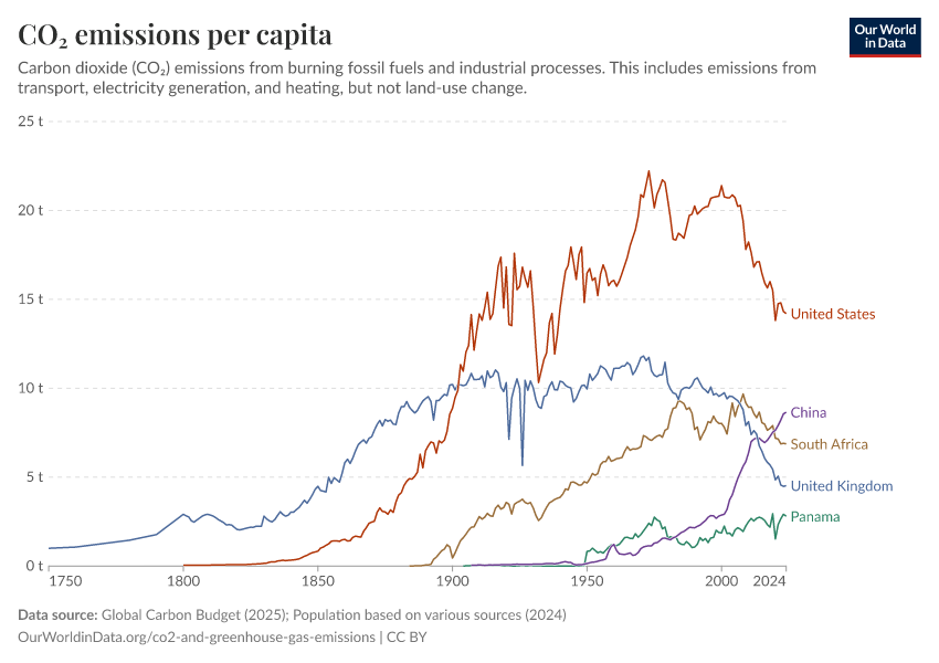 CO₂ emissions per capitaLong-run estimates from the Global Carbon Budget