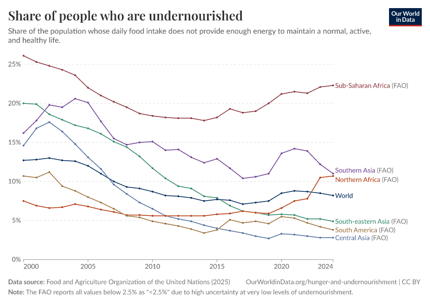 Share of people who are undernourishedUN FAO