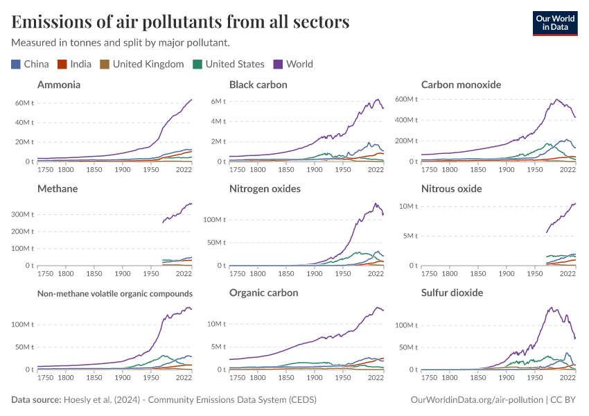 Explore historical emissions of air pollutants across the world.