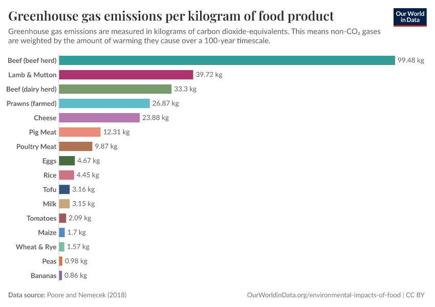 Explore the land use, carbon, and water footprints of food products.