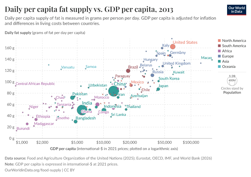 In this interactive map, we see the differences in how much fat each person gets every day in different countries.