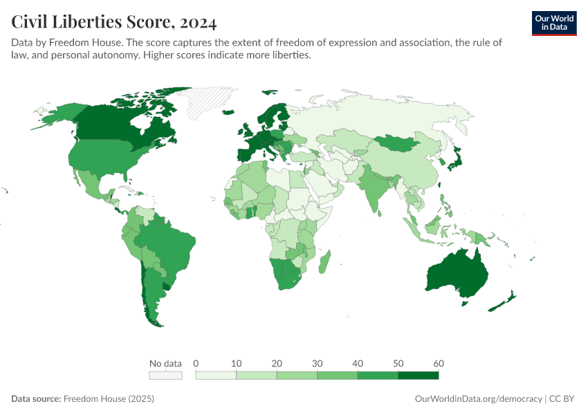 Freedom House (2025) – processed by Our World in DataFull citation