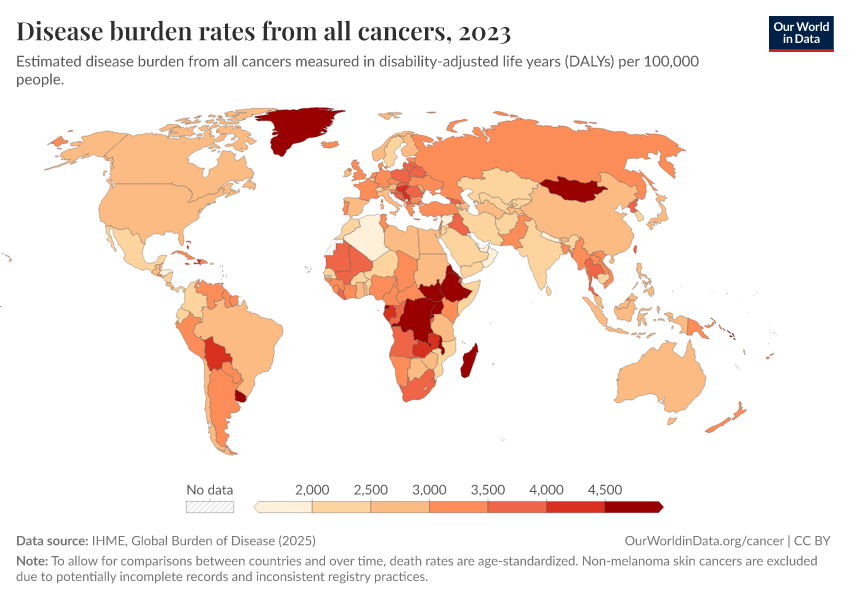Disease burden rates from all cancers