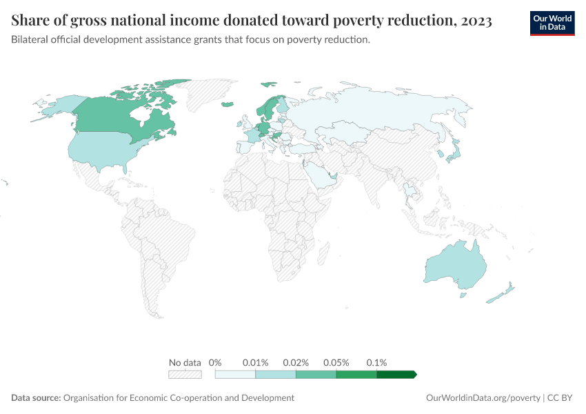“Data Page: Share of gross national income donated toward poverty reduction”. Our World in Data (2026). Data adapted from Organisation for Economic Co-operation and Development. Retrieved from https://data-faostat-update-datasets.owid.pages.dev:8789/20260105-133053/grapher/donated-official-development-assistance-grants-for-poverty-reduction.html [online resource] (archived on January 5, 2026).How to cite this data
