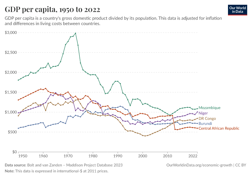 Bolt and van Zanden – Maddison Project Database 2023 – with minor processing by Our World in Data. “GDP per capita – Maddison Project Database – Long-run data in constant international-$” [dataset]. Bolt and van Zanden, “Maddison Project Database 2023” [original data]. Retrieved March 3, 2026 from https://data-faostat-update-datasets.owid.pages.dev:8789/20251111-144738/grapher/gdp-per-capita-maddison-project-database.html (archived on November 11, 2025).