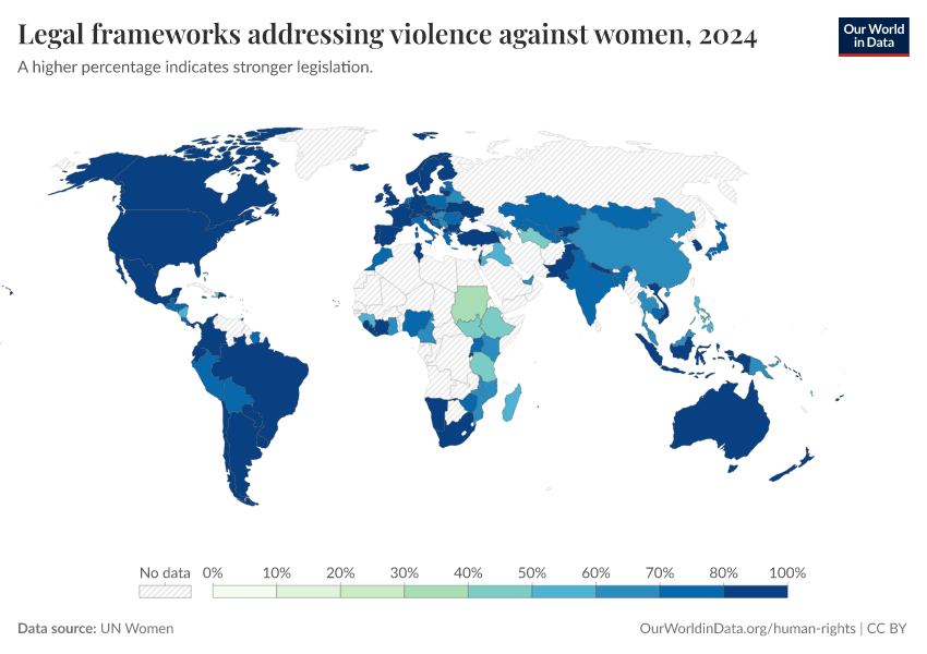 “Data Page: Legal frameworks addressing violence against women”. Our World in Data (2026). Data adapted from UN Women. Retrieved from https://data-faostat-update-datasets.owid.pages.dev:8789/20260130-180113/grapher/legal-frameworks-regarding-violence-against-women.html [online resource] (archived on January 30, 2026).How to cite this data