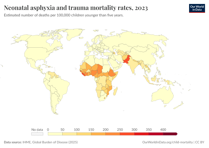 IHME, Global Burden of Disease (2025) – with major processing by Our World in Data. “Neonatal asphyxia and trauma mortality rates” [dataset]. IHME, Global Burden of Disease, “Global Burden of Disease - Deaths” [original data]. Retrieved March 3, 2026 from https://data-faostat-update-datasets.owid.pages.dev:8789/20260211-174736/grapher/mortality-neonatal-asphyxia-and-trauma.html (archived on February 11, 2026).