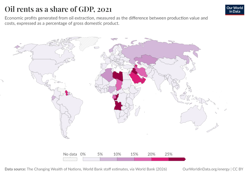 “Data Page: Oil rents as a share of GDP”. Our World in Data (2026). Data adapted from The Changing Wealth of Nations, World Bank staff estimates, via World Bank. Retrieved from https://data-faostat-update-datasets.owid.pages.dev:8789/20260301-083443/grapher/oil-rents-as-a-share-of-gdp.html [online resource] (archived on March 1, 2026).How to cite this data