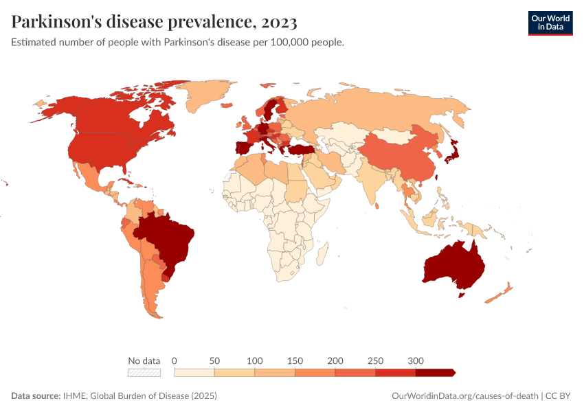 “Data Page: Parkinson's disease prevalence”, part of the following publication: Esteban Ortiz-Ospina and Max Roser (2016) - “Global Health”. Data adapted from IHME, Global Burden of Disease. Retrieved from https://data-faostat-update-datasets.owid.pages.dev:8789/20260212-172859/grapher/parkinsons-disease-prevalence-ihme.html [online resource] (archived on February 12, 2026).How to cite this data
