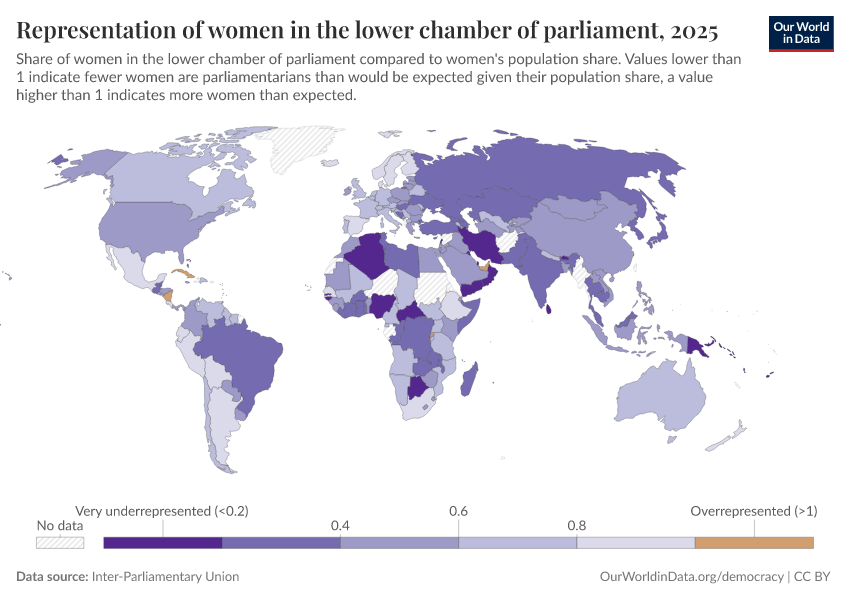 “Data Page: Representation of women in the lower chamber of parliament”. Our World in Data (2026). Data adapted from Inter-Parliamentary Union. Retrieved from https://data-faostat-update-datasets.owid.pages.dev:8789/20260130-180113/grapher/representation-of-women-in-lower-chamber-of-parliament.html [online resource] (archived on January 30, 2026).How to cite this data