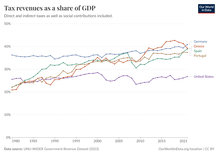 UNU-WIDER Government Revenue Dataset (2023) – with major processing by Our World in Data. “Tax revenues as a share of GDP – UNU-WIDER” [dataset]. UNU-WIDER, “Government Revenue Dataset (GRD) 2023” [original data]. Retrieved March 3, 2026 from https://data-faostat-update-datasets.owid.pages.dev:8789/20260105-133053/grapher/tax-revenues-as-a-share-of-gdp-unu-wider.html (archived on January 5, 2026).