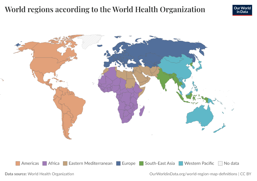 “Data Page: World regions according to the World Health Organization”. Our World in Data (2026). Data adapted from World Health Organization. Retrieved from https://data-faostat-update-datasets.owid.pages.dev:8789/20260224-141219/grapher/who-regions.html [online resource] (archived on February 24, 2026).How to cite this data