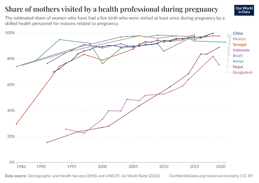 Recent data on maternal mortality shows continuing improvements around the world, as the interactive chart below shows.